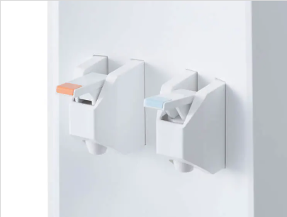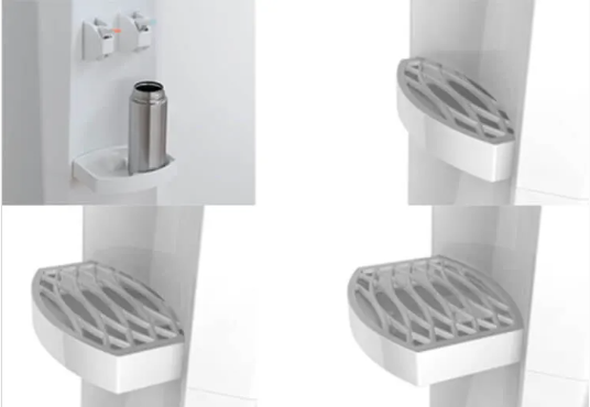 引き出し式水受け皿を採用し、用途に応じて3段階に引き出して使用できるようにしました。水受け皿の内部形状が哺乳瓶や口の狭いボトルに給水する際のガイドとなり、不意なやけど等の事故を防ぎます。また、最小サイズでも給水口直下までしっかりカバーします。